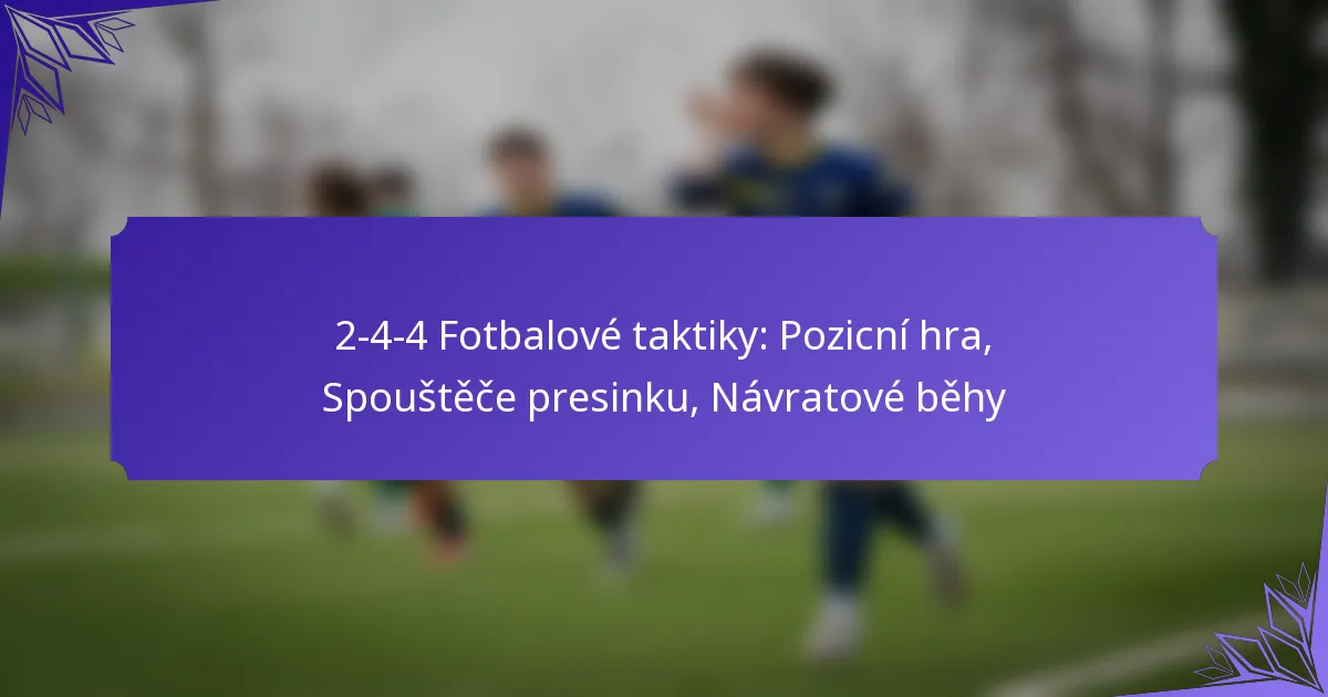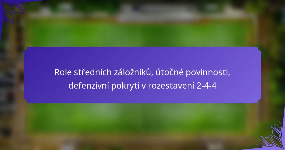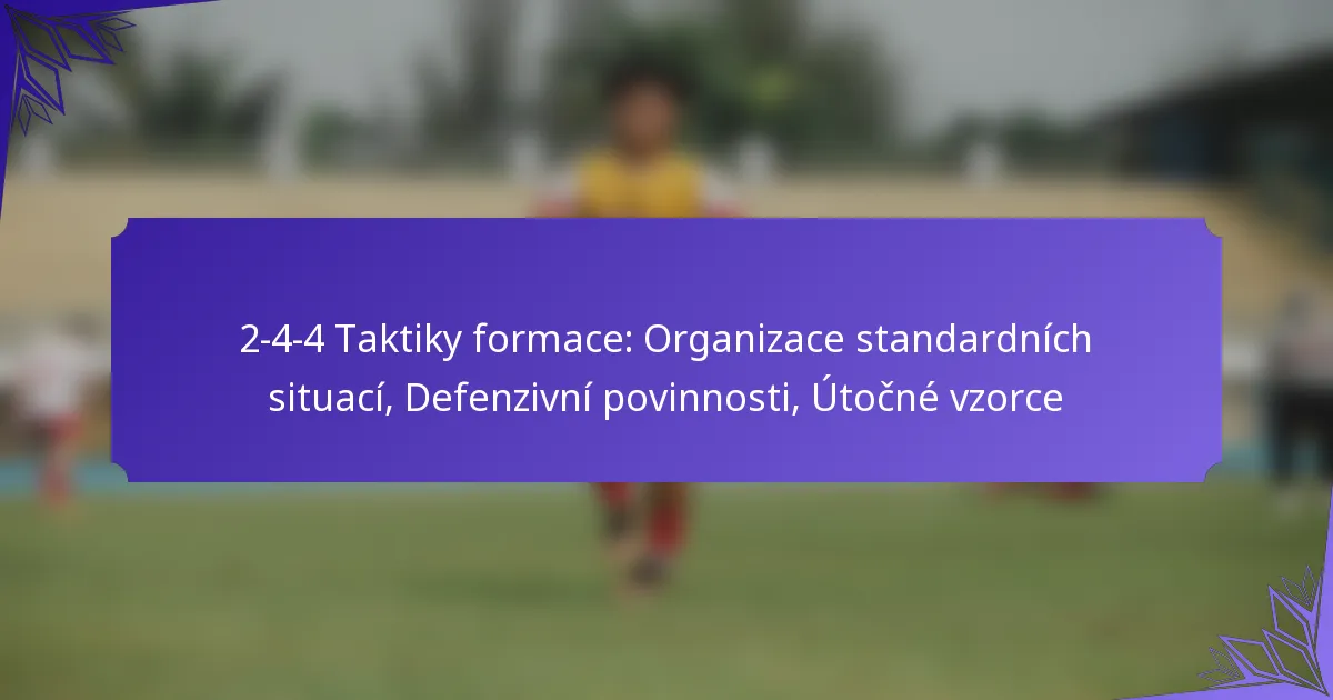 Formace 2-4-4 je dynamické fotbalové uspořádání, které upřednostňuje ofenzivní hru s rozestavením dvou obránců, čtyř záložníků a čtyř útočníků. Jasné vymezení rolí, odpovědností a očekávání každého hráče je zásadní pro dosažení efektivní týmové spolupráce a… Definování rolí, odpovědností a očekávání ve formaci 2-4-4